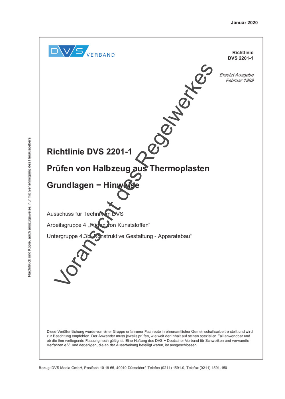 Richtlinie DVS 2201-1 (im Archiv) (01/2020)