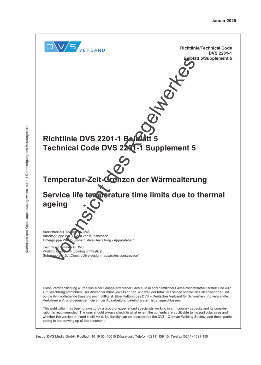 Richtlinie DVS 2201-1 Beiblatt 5 (im Archiv) (01/2020)