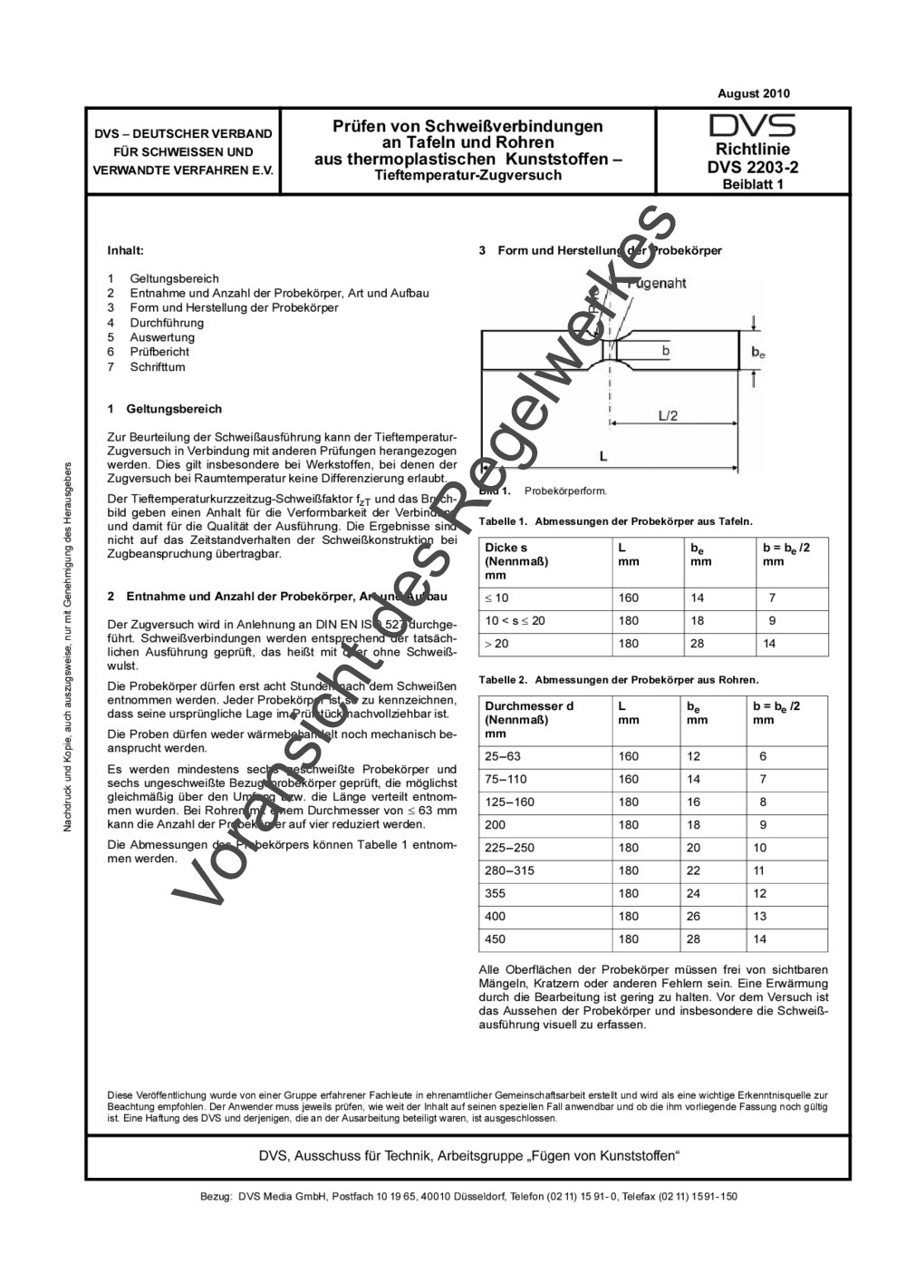 Richtlinie DVS 2203-2 Beiblatt 1 (08/2010)