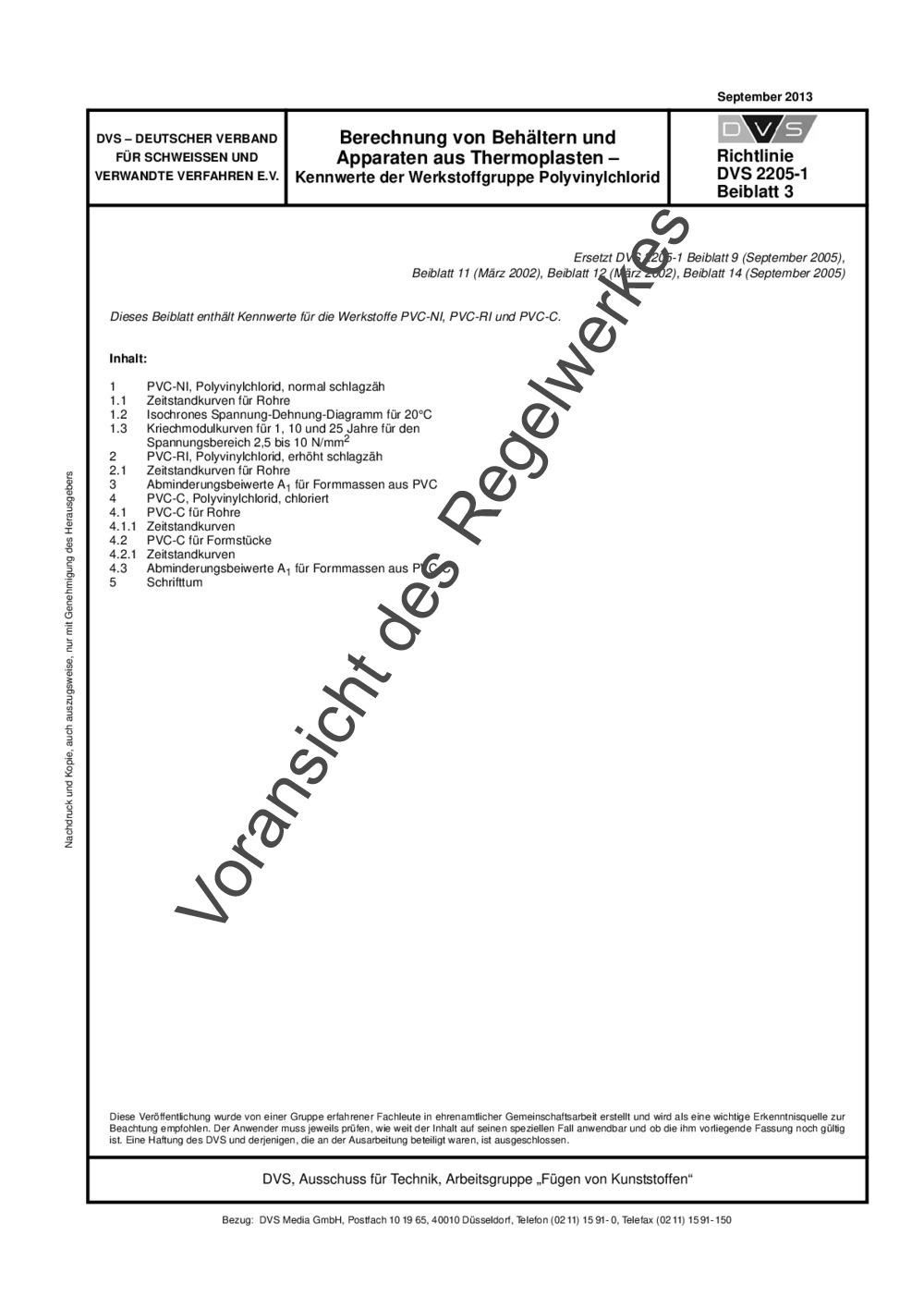 Dieses Beiblatt enthält Kennwerte für die Werkstoffe PVC-NI, PVC-RI und PVC-C.