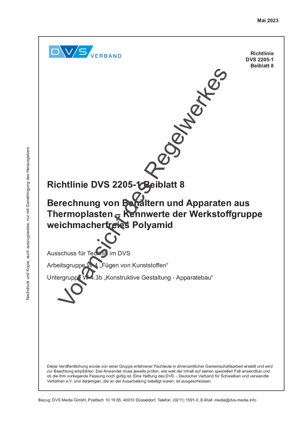 Richtlinie DVS 2205-1 Beiblatt 8 (05/2023)