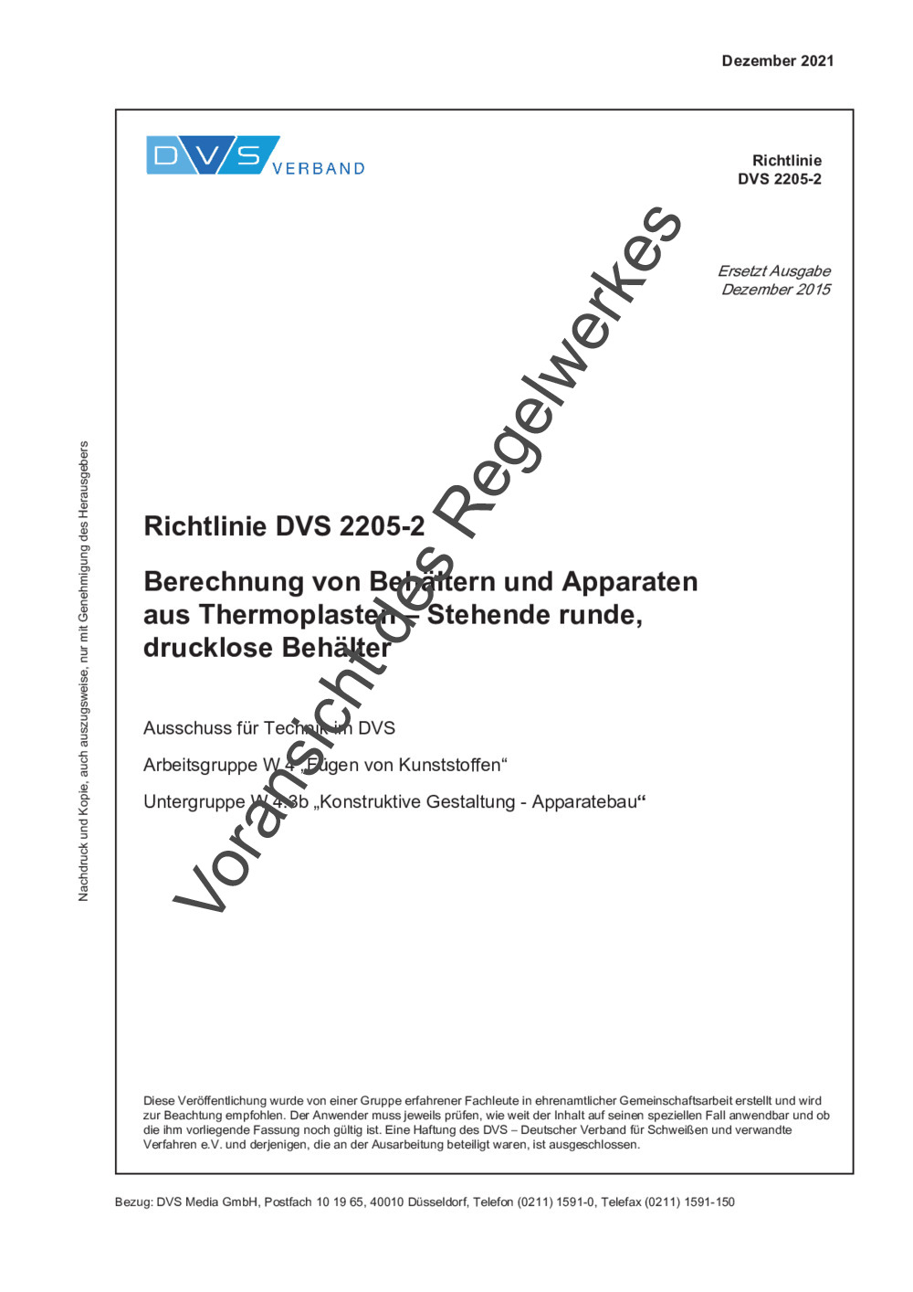 Richtlinie DVS 2205-2 (im Archiv) (12/2015)
