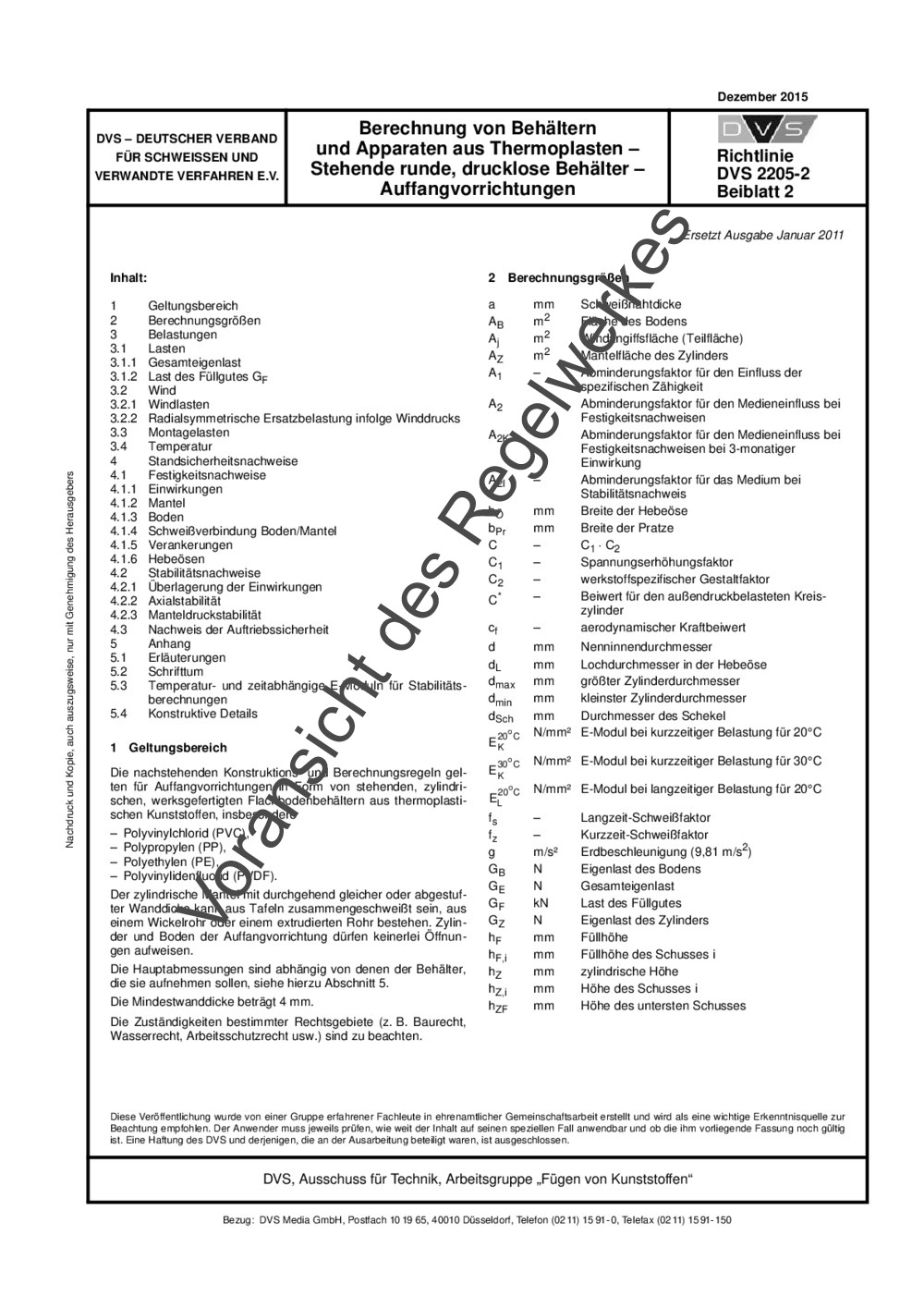 Richtlinie DVS 2205-2 Beiblatt 2 (im Archiv) (12/2015)