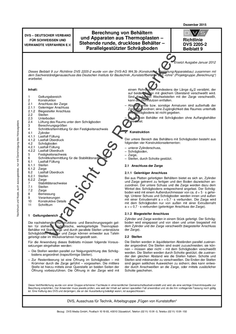 Richtlinie DVS 2205-2 Beiblatt 9 (im Archiv) (12/2015)