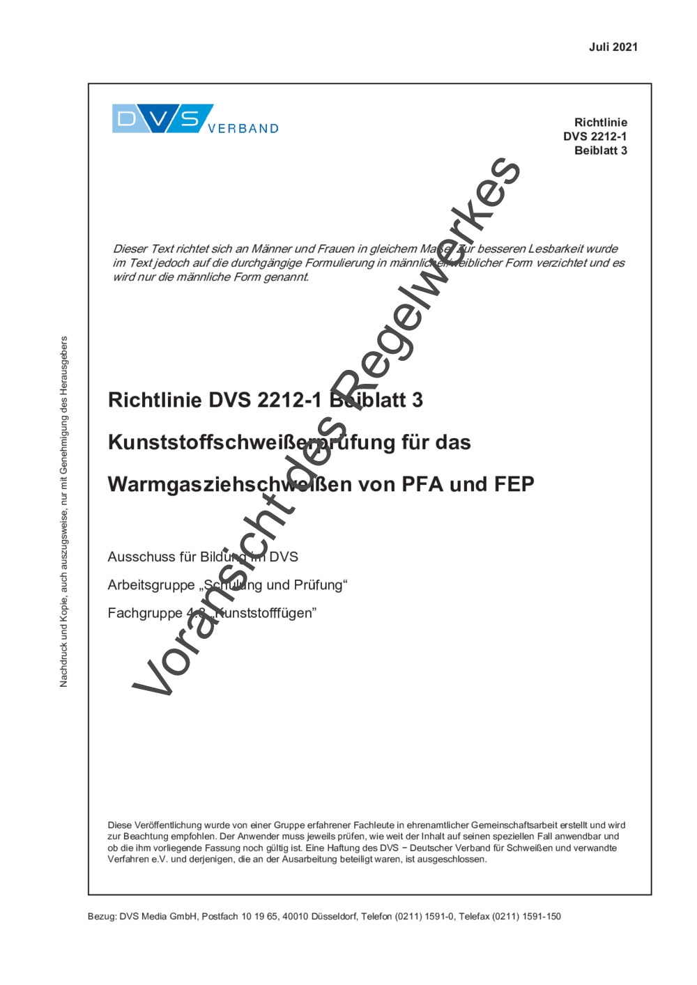 Richtlinie DVS 2212-1 Beiblatt 3 (07/2021)