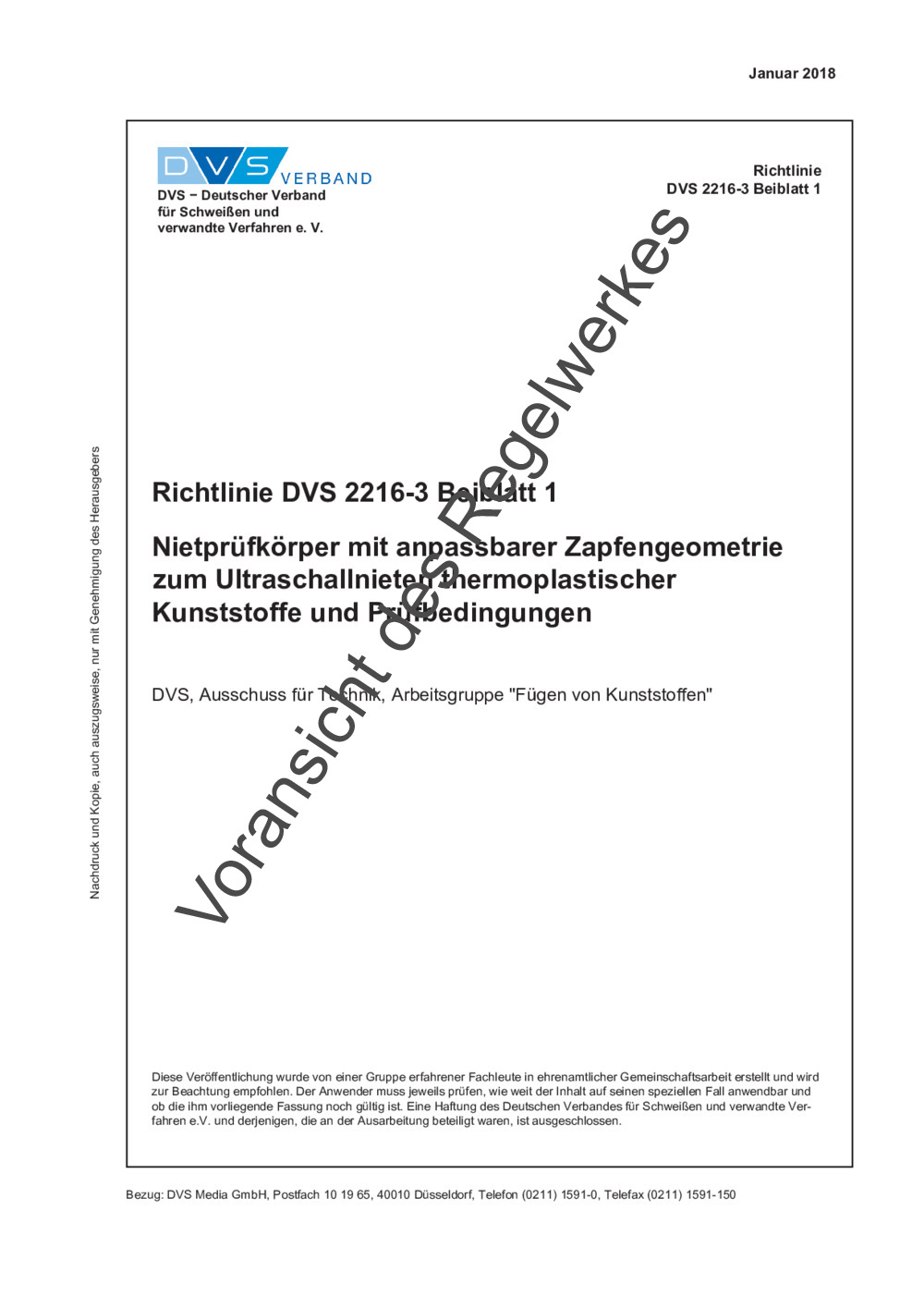 Richtlinie DVS 2216-3 Beiblatt 1 (01/2018)