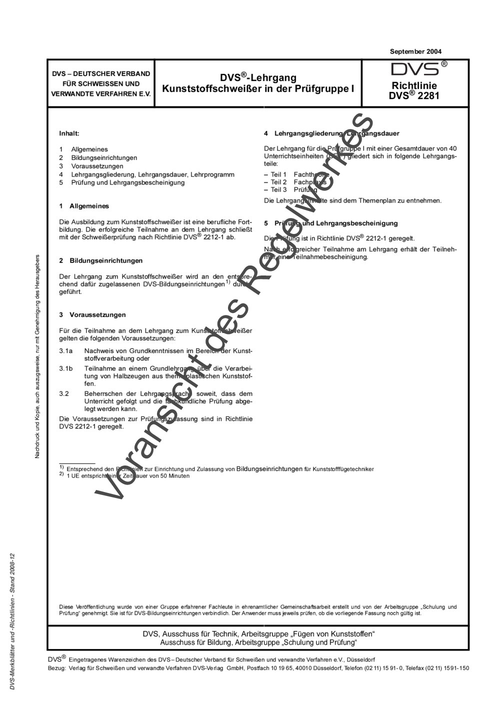 Richtlinie DVS 2281 (im Archiv) (09/2004)