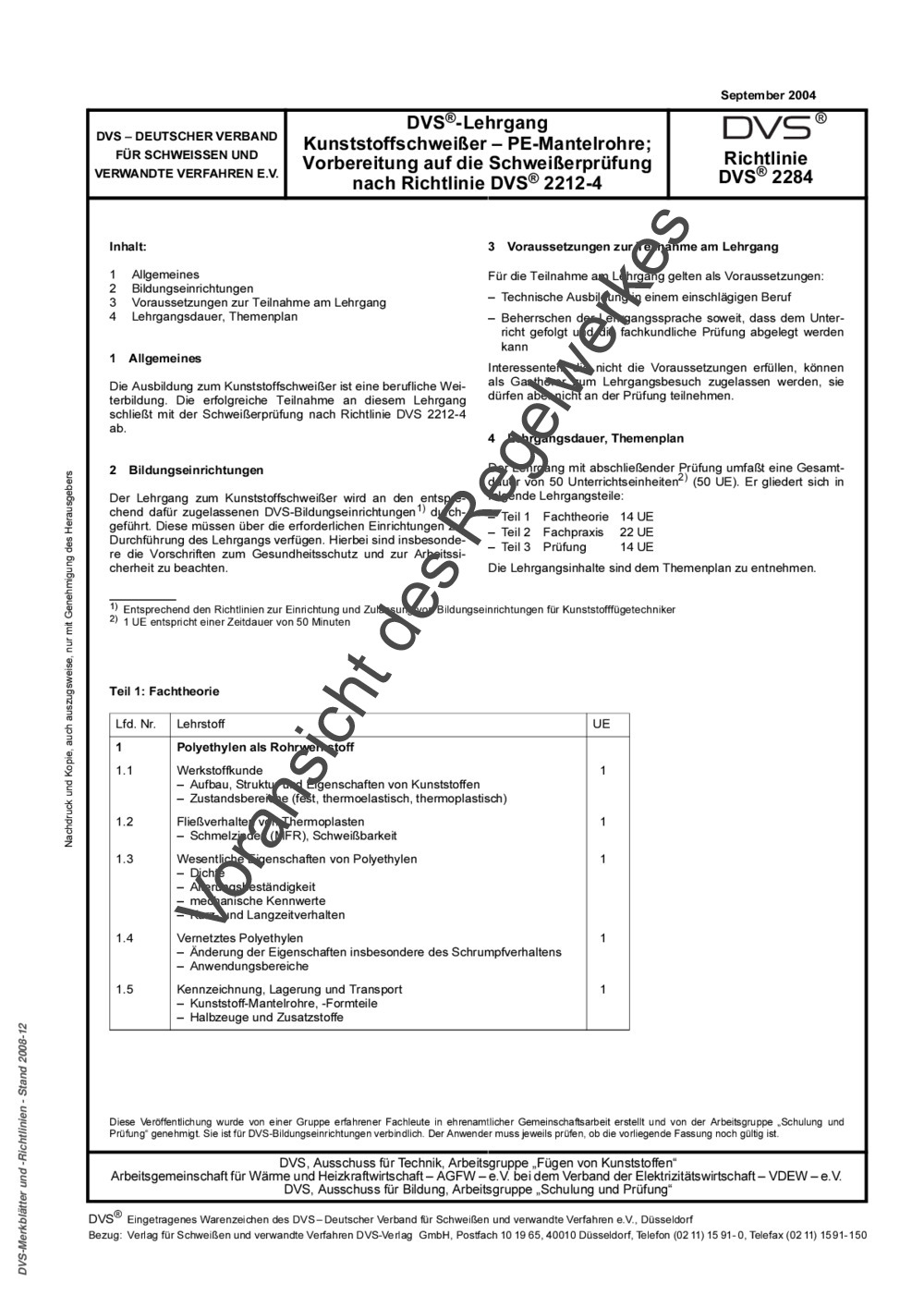 DVS®-Lehrgang - Kunststoffschweißer - PE-Mantelrohre - Vorbereitung auf die Schweißerprüfung nach Richtlinie DVS® 2212-4