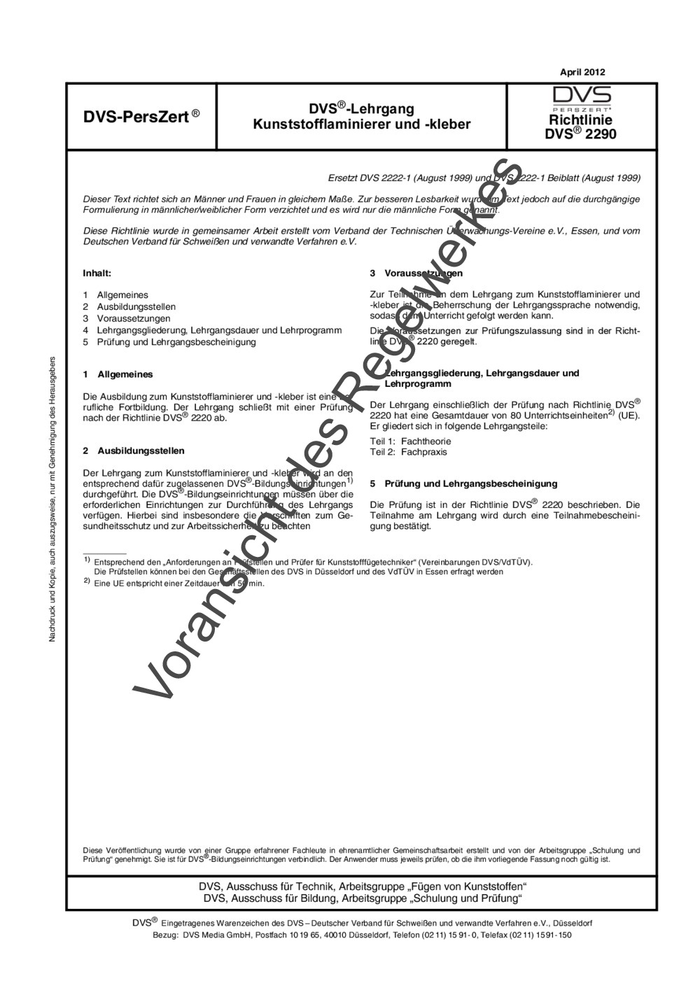 Die Ausbildung zum Kunststofflaminierer und -kleber ist eine berufliche Fortbildung. Der Lehrgang schließt mit einer Prüfung nach der Richtlinie DVS 2220 ab.