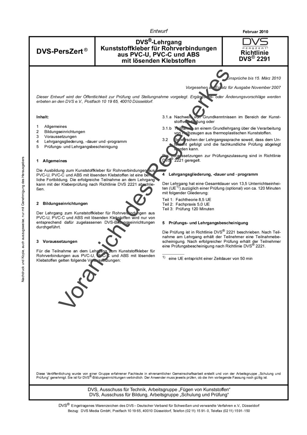Richtlinie DVS 2291 (12/2010)