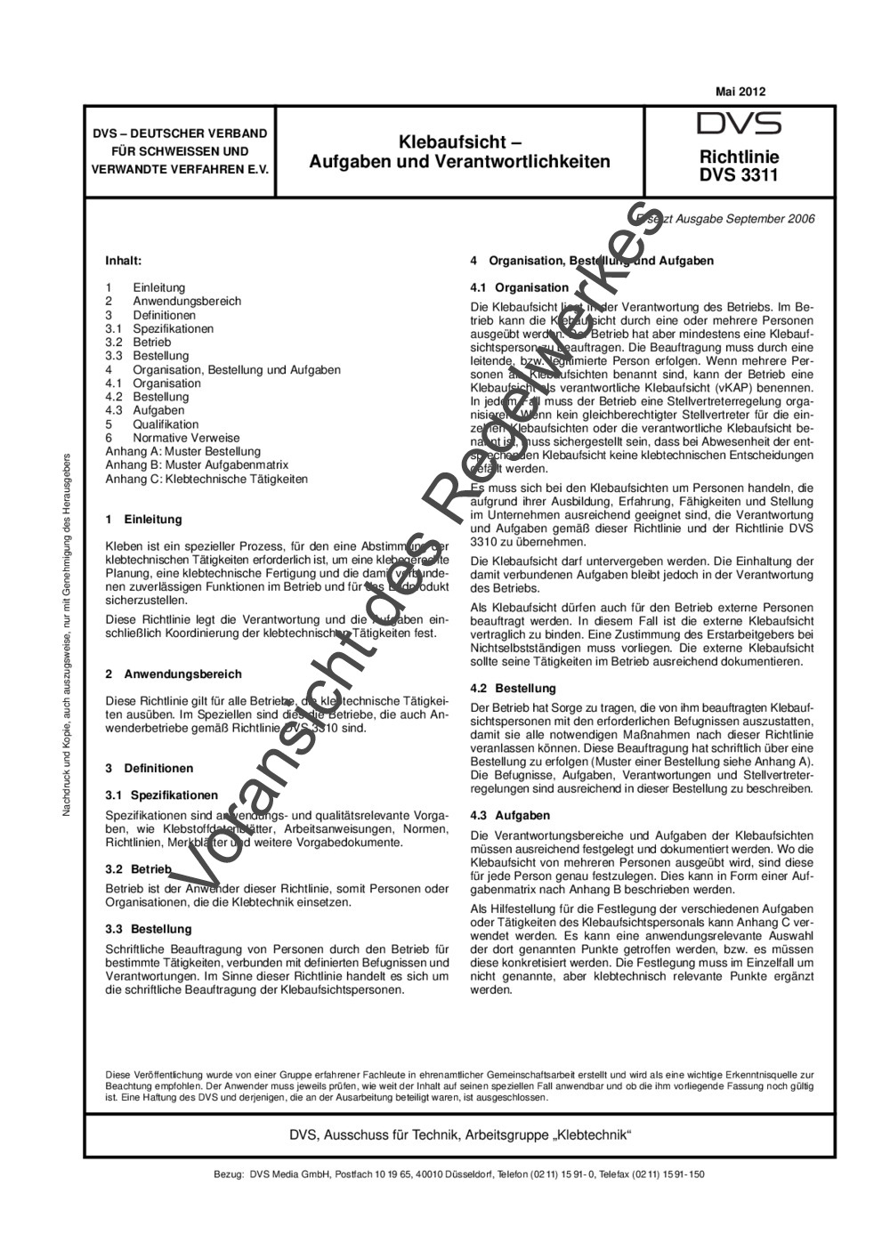 Kleben ist ein spezieller Prozess, für den eine Abstimmung der klebtechnischen Tätigkeiten erforderlich ist, um eine klebegerechte Planung, eine klebtechnische Fertigung und die damit verbundenen zuverlässigen Funktionen im Betrieb und für das Endprodukt sicherzustellen. Diese Richtlinie legt die Verantwortung und die Aufgaben einschließlich Koordinierung der klebtechnischen Tätigkeiten fest. Diese Richtlinie gilt für alle Betriebe, die klebtechnische Tätigkeiten ausüben. Im Speziellen sind dies die Betriebe, die auch Anwenderbetriebe gemäß Richtlinie DVS 3310 sind.